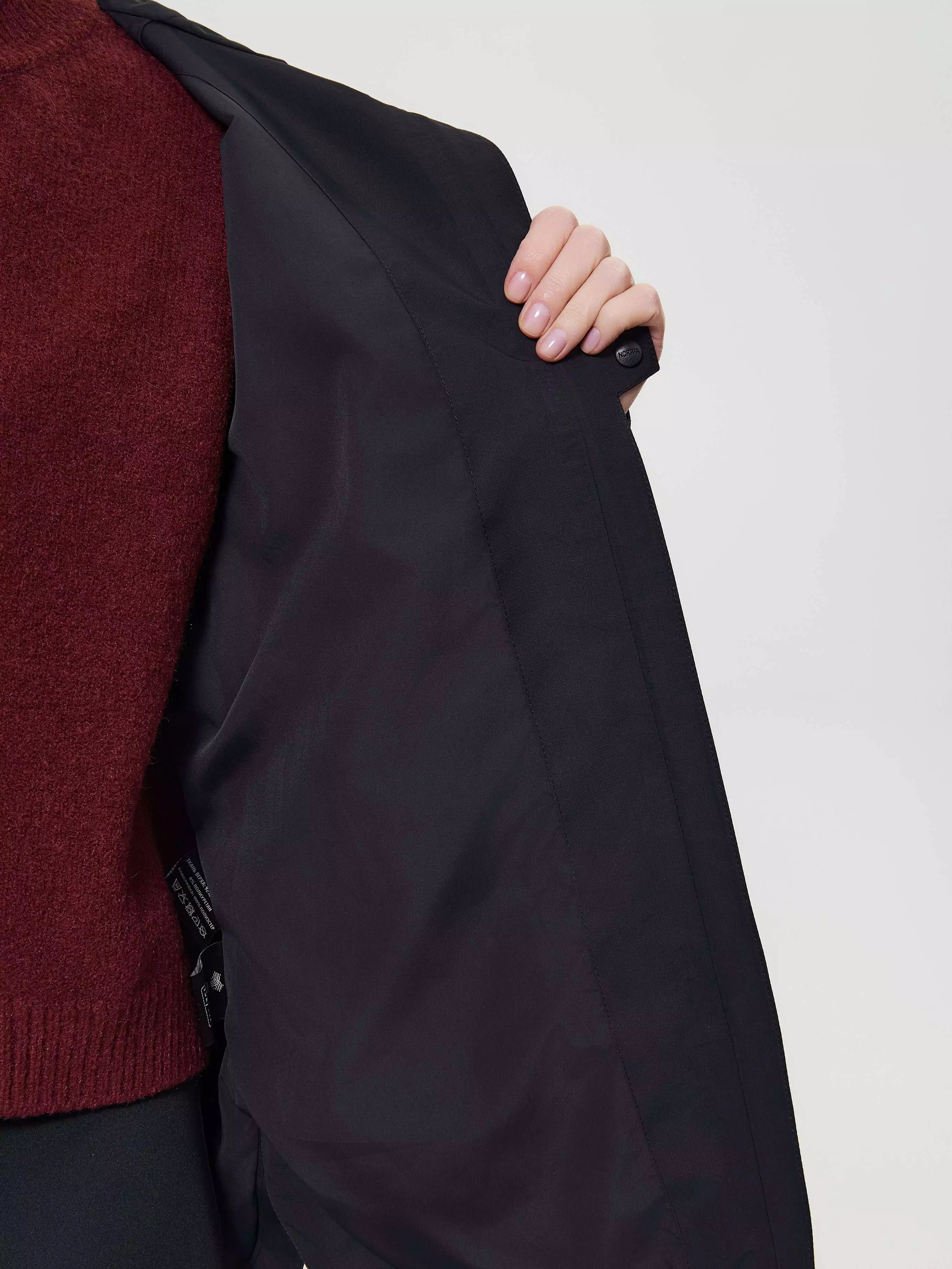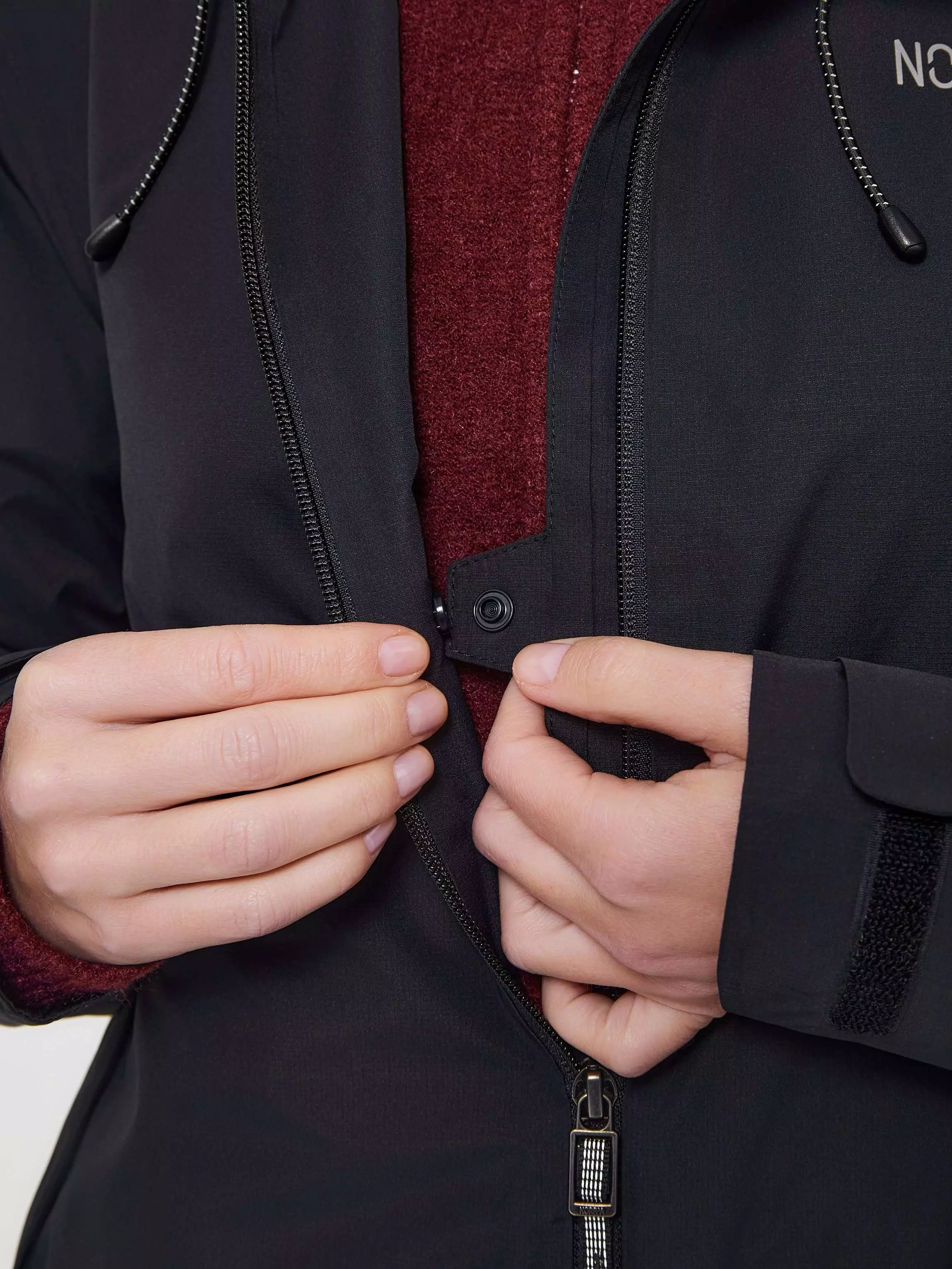 Центральная застежка: открытая молния YKK с деталью для защиты подбородка при застегивании, внутренняя планка для защиты от ветра и дождя с кнопкой для фиксации бортов в расстегнутом виде