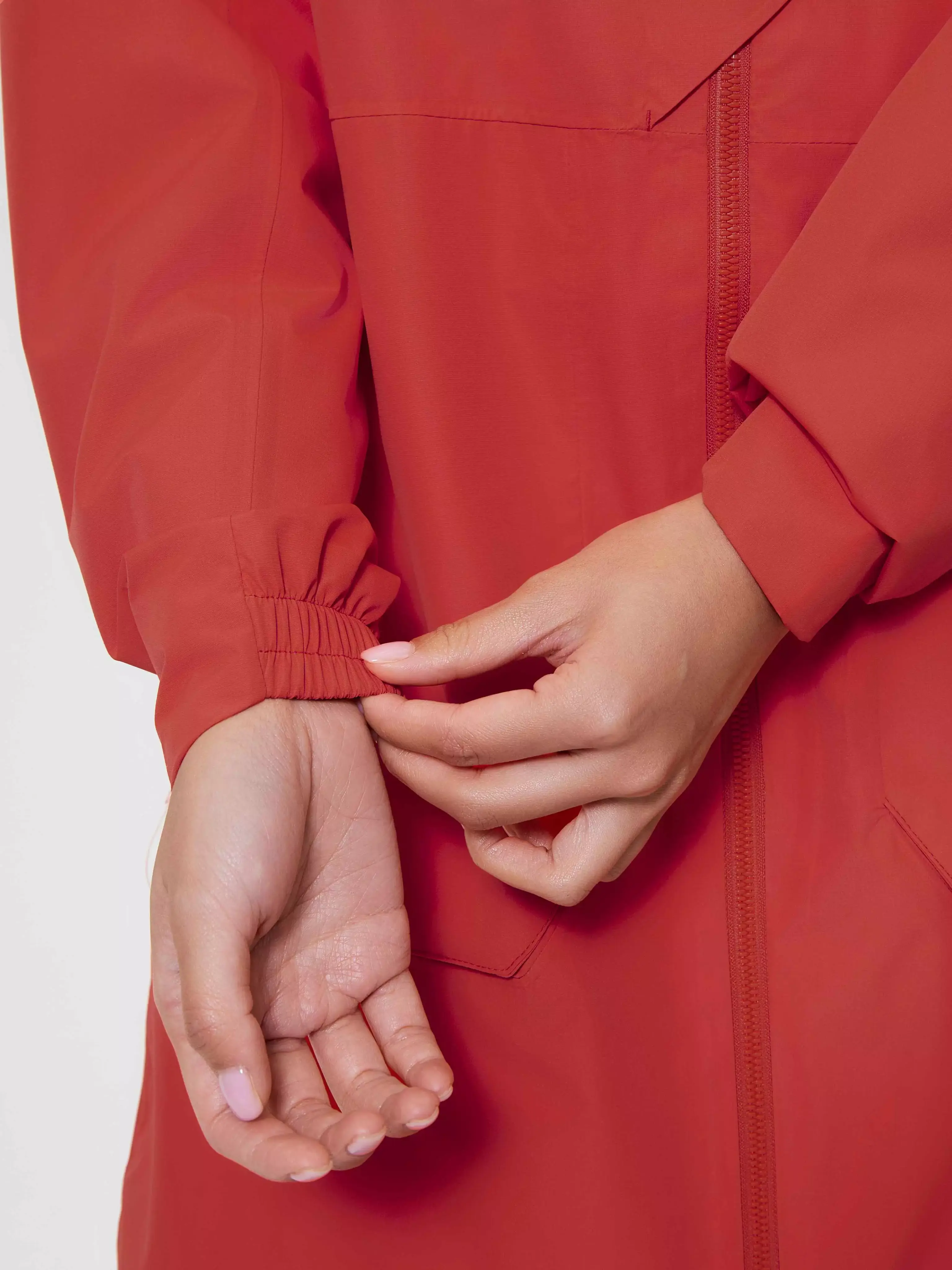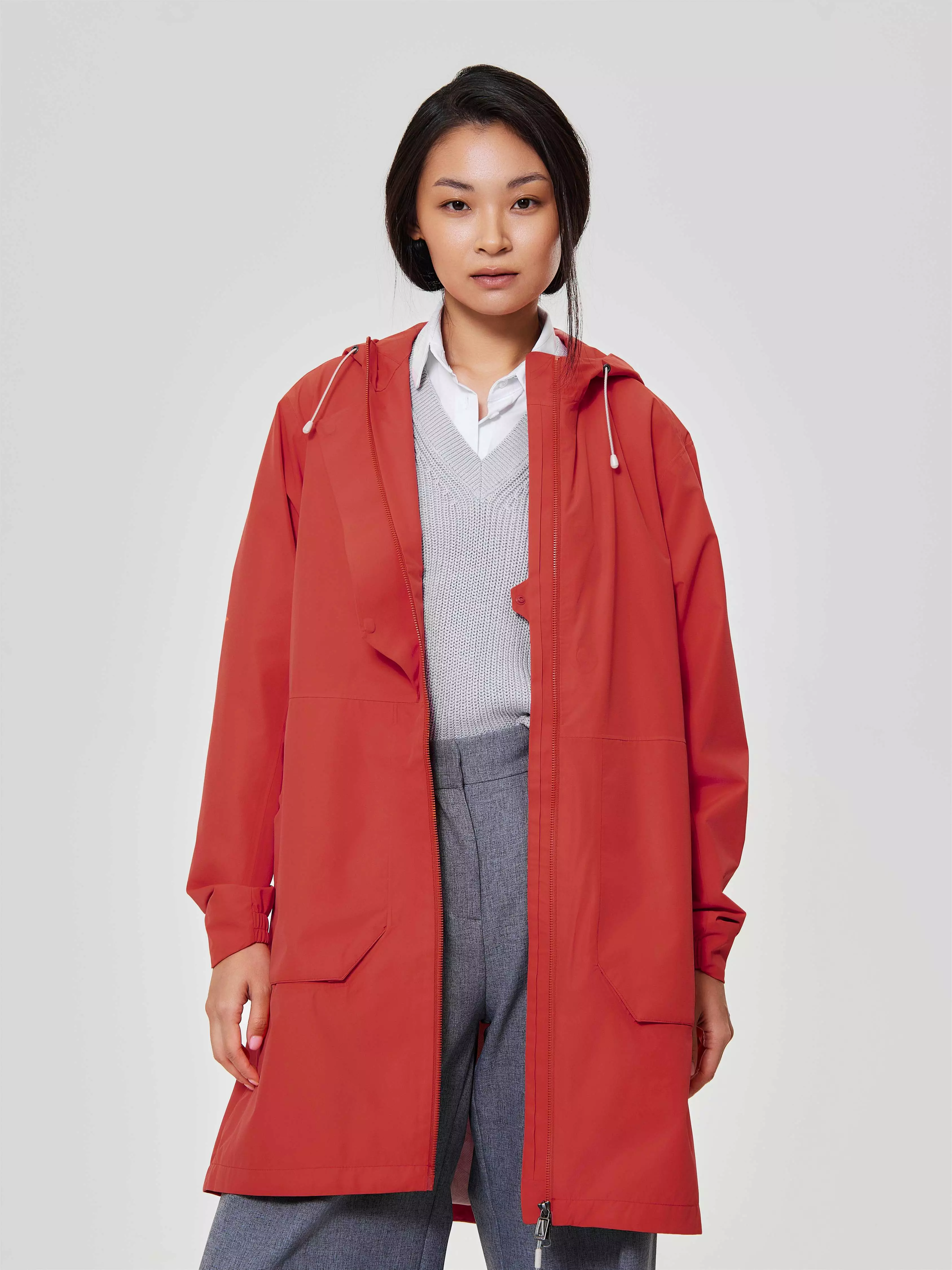 Женская весенне - осенняя удлиненная куртка без утеплителя из мембранной ткани. Непромокаемая (уровень непромокаемости 15000 мм) и ветронепродуваемая. Паропроницаемость 10000 г/м2/24 ч. Состав ткани: 92% полиэстер, 8% полиуретан. Длина по спинке в размере 36 -  94 см. Посадка: свободная. Крой: А-силуэт.  Промокод: "Весна"