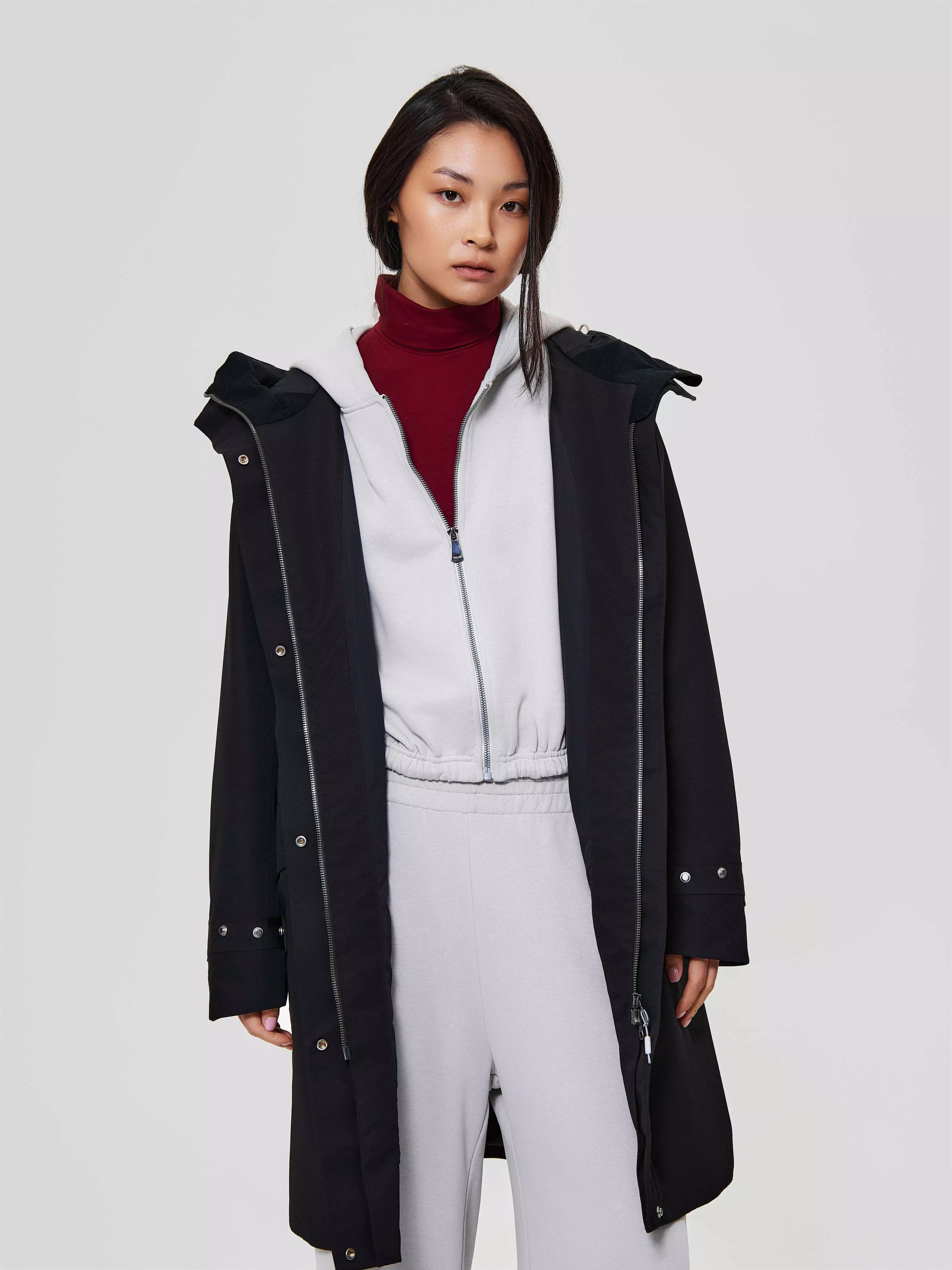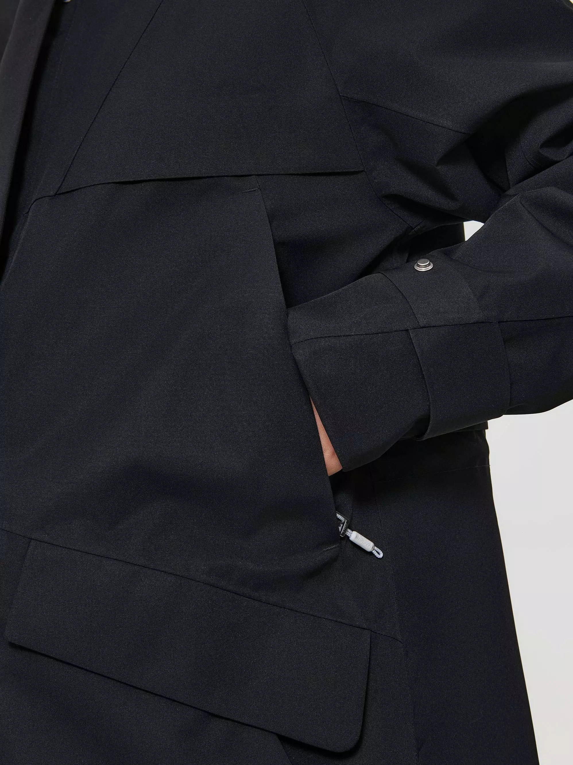 Регулировки: ширина низа рукава, талия, глубина капюшона, объем капюшона