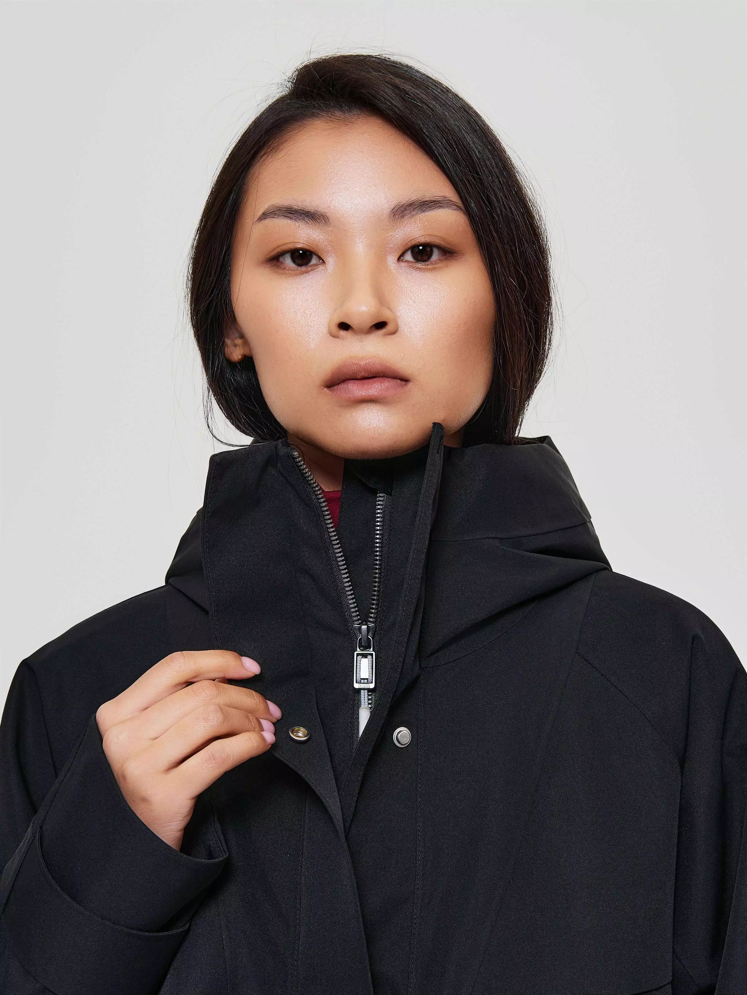 Центральная застежка: двухзамковая молния YKK с деталью для защиты подбородка при застегивании, внешняя планка для защиты от ветра и дождя на кнопках и магнитах