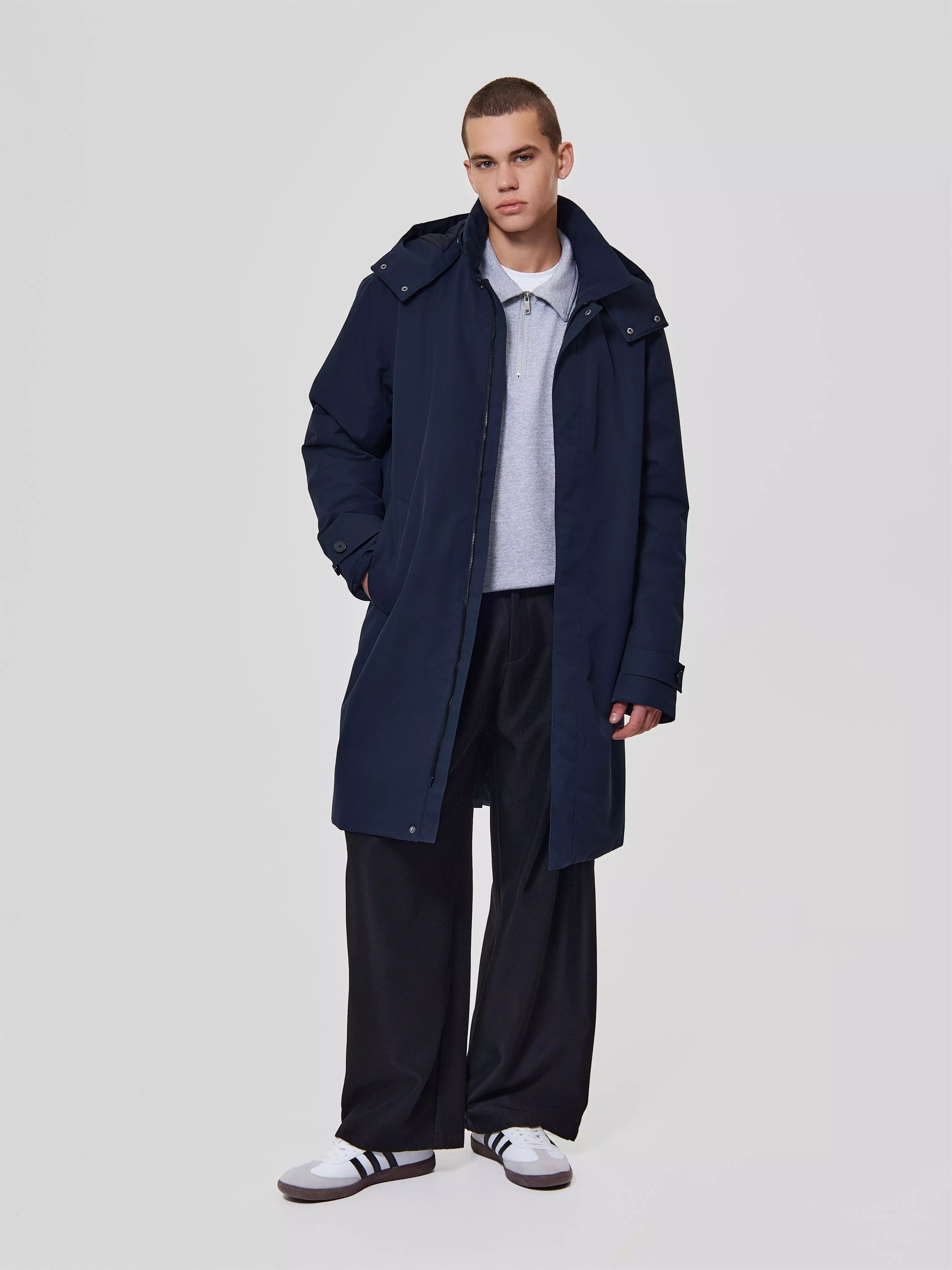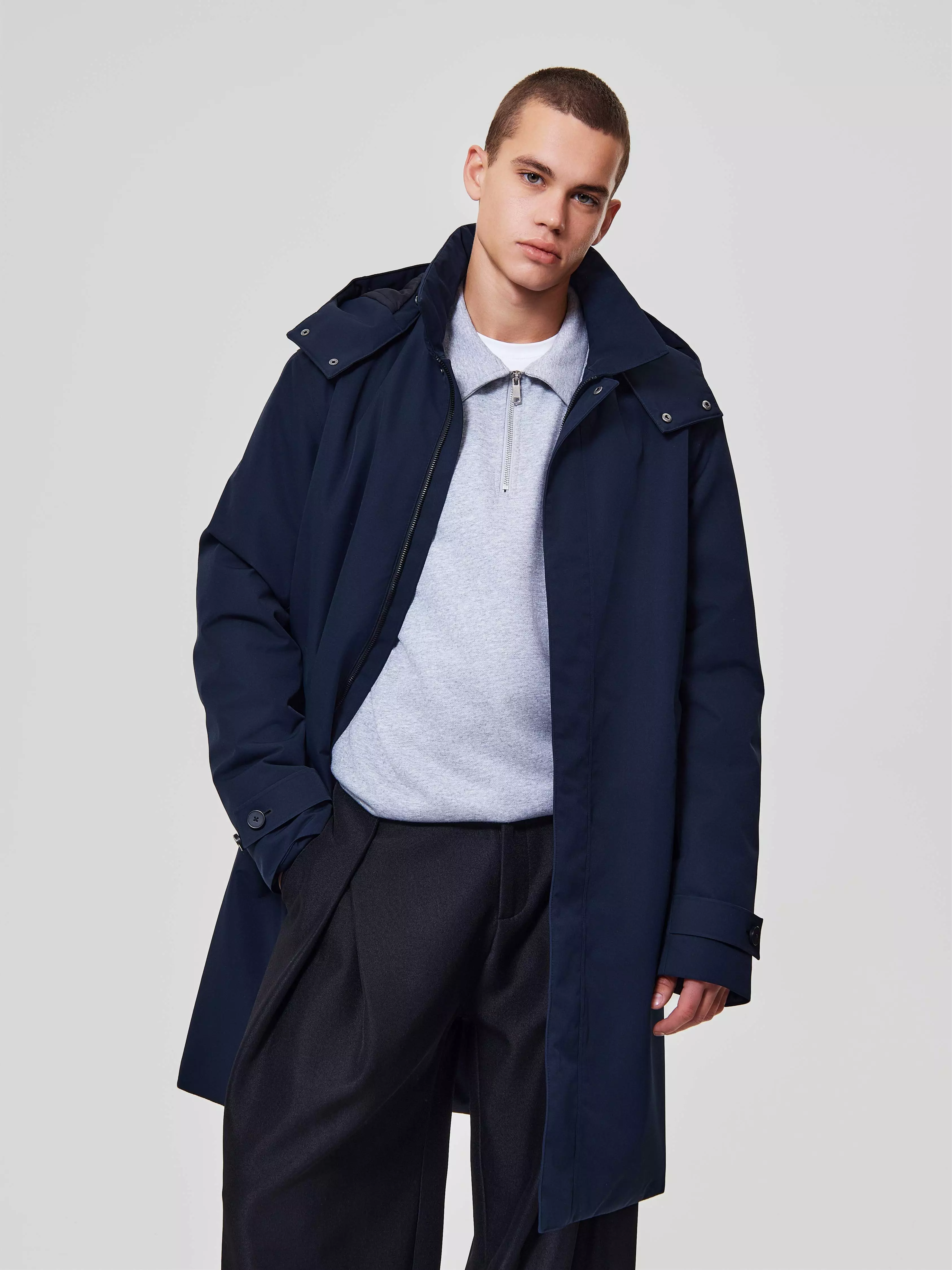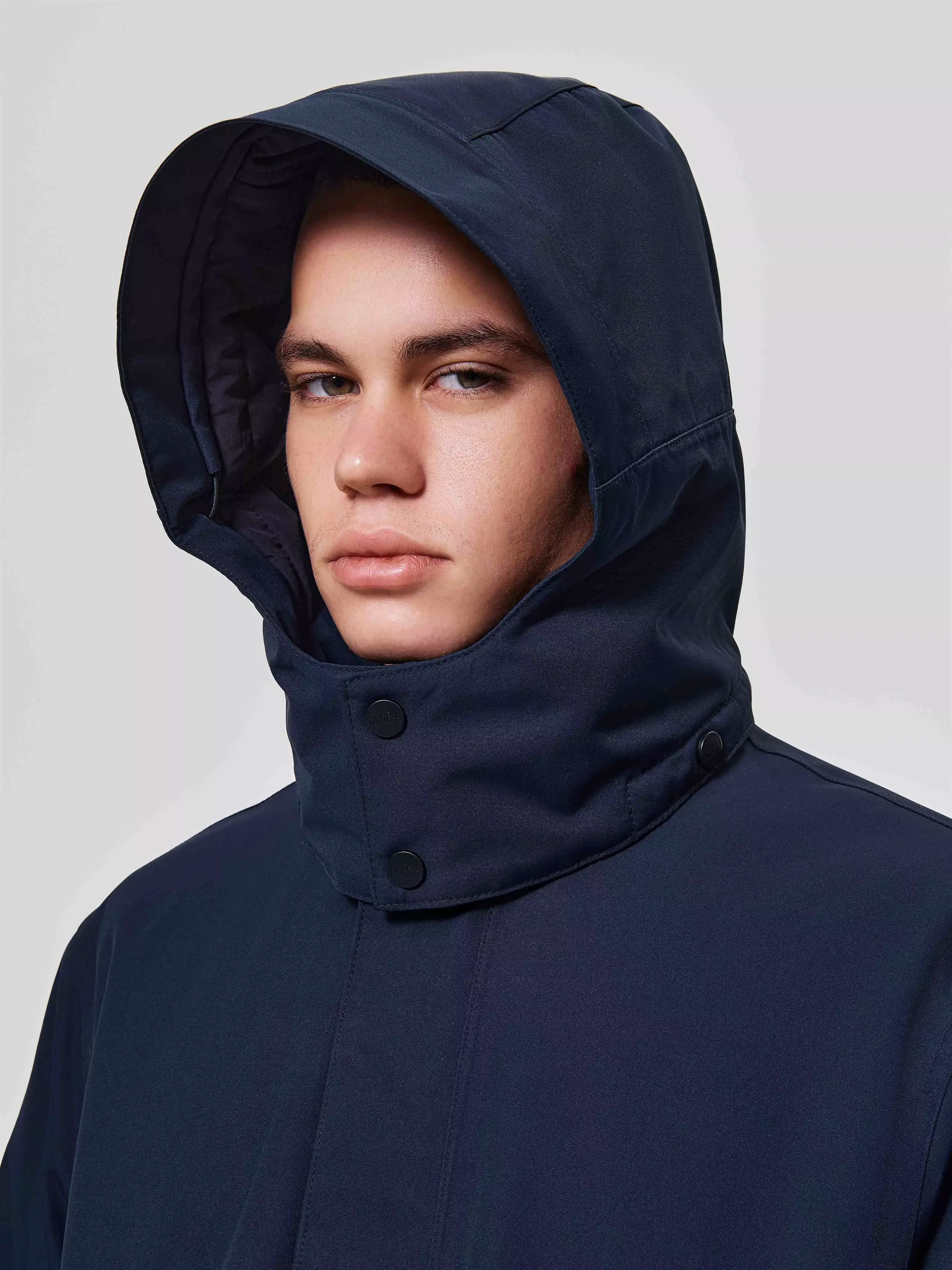 Регулировки: ширина низа рукавов на патах и пуговицах с лазерной обработкой петель, глубина капюшона